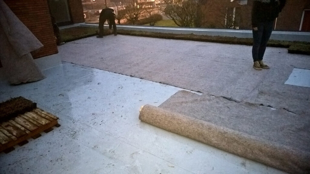 Aanleg van groendak en deel geballast dak voor de aanlegging van zonnepanelen.